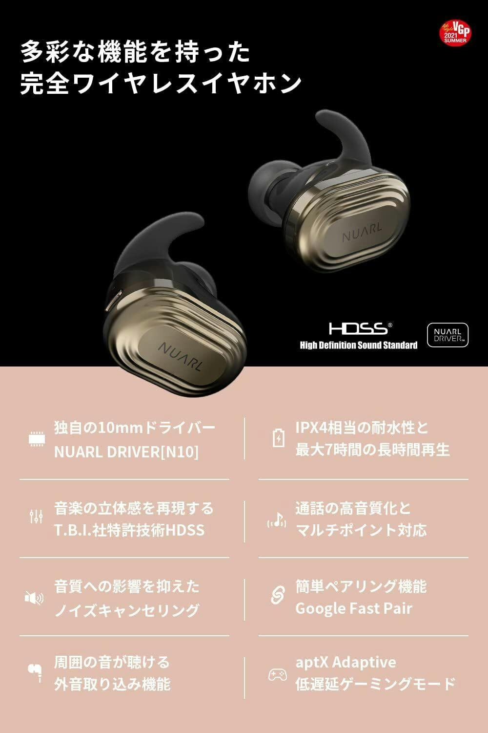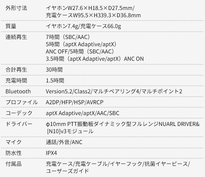 ワイヤレスイヤホンには、Qualcomm社の最新SoC QCC3040を搭載。また、10.0mmの大型ダイナミックドライバー “NUARL DRIVER”[N10]v3も搭載しています。