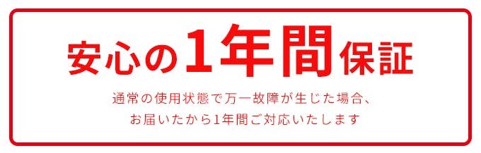 こちらの製品には1年間のメーカー保証がついています。また、一部のパーツについては交換可能で、長期間安心してご使用いただけます。