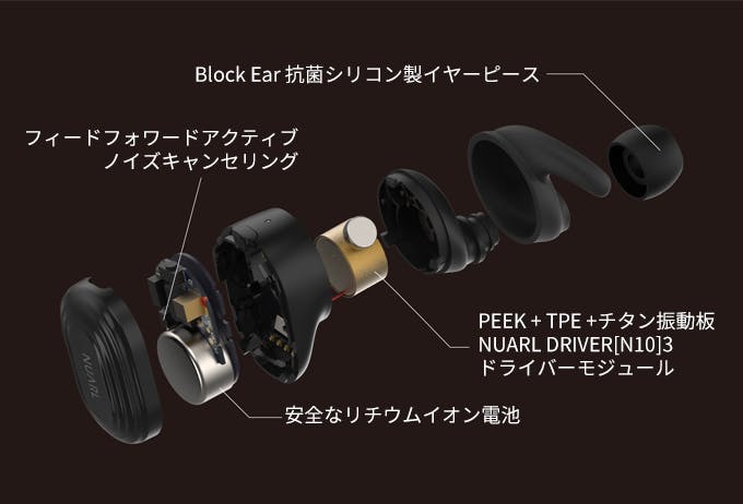 1.独自ドライバー:NUARL独自の10mmドライバーによる豊かな音質。