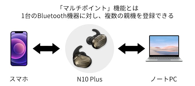 通話時の音声を高音質化したツインcVc (Clear Voice Capture)マイクを搭載。「マルチポイント」にも対応しています。