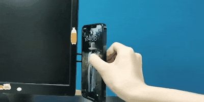 マウントをモニター背面に取り付ければ、デスクトップモニターにもスマートフォンをセットアップできます。