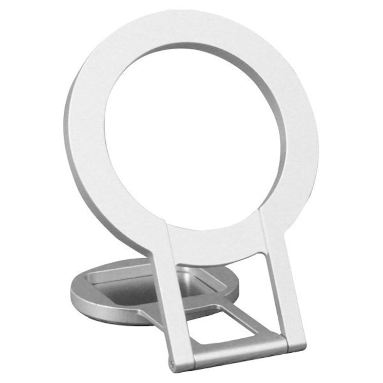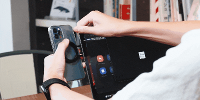 付属のマグネットシールをスマートフォン背面に貼り付ければ「MAGHO setup stand」にスマートフォンを簡単取付できます。