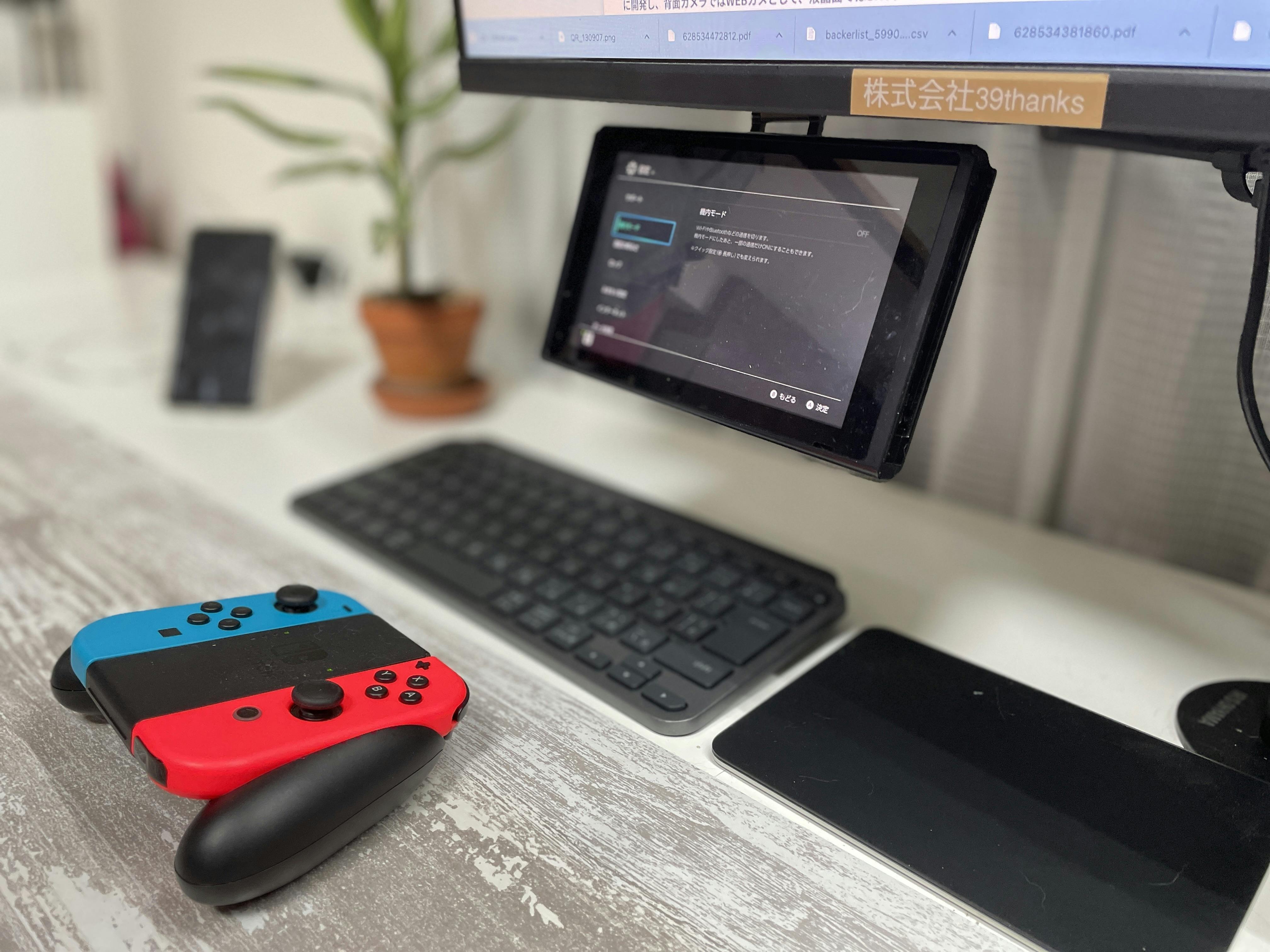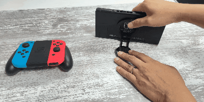 付属のマグネットシールをNintendo Switchの背面に貼れば、無段階スタンドとして使えます。